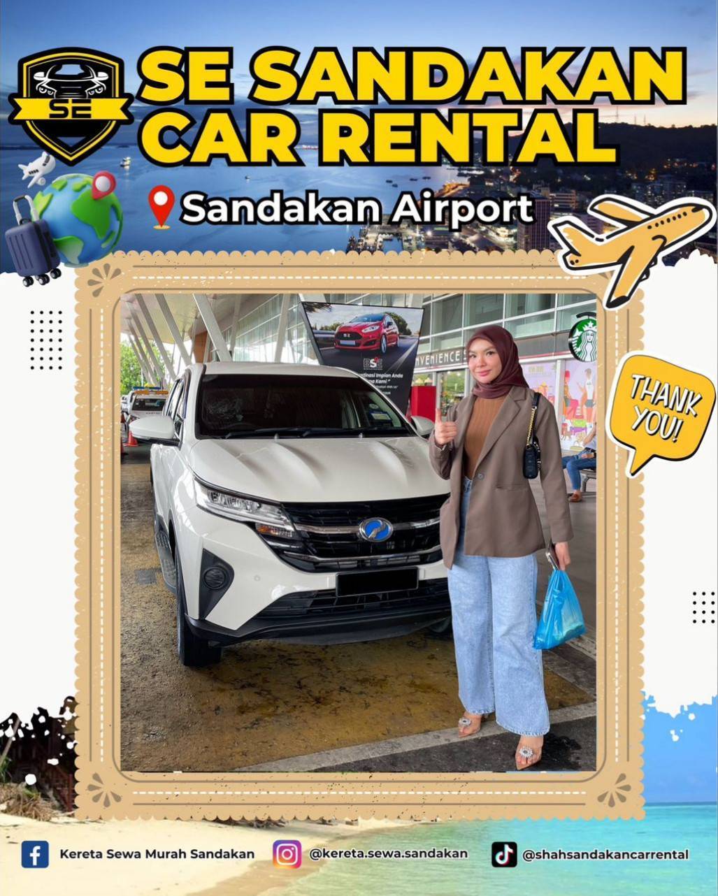KERETA SEWA SANDAKAN menawarkan perkhidmatan yang berfokus kepada kepuasan pelanggan dengan kereta-kereta yang disucikan dan diselenggara dengan baik. Setiap kereta yang disewa telah melewati proses pembersihan dan pemeriksaan yang teliti sebelum diberikan kepada tetamu mereka.